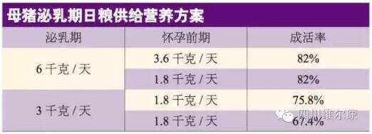从下图可以看出,采食量不够会对成活率造成较大影响,我们可以依此公式计算哺乳母猪的采食量需求:哺乳母猪总代谢能需要=[(仔猪日增重×哺乳仔猪数×4.92)-(90×哺乳仔猪数)]/0.72+106×BW0.75