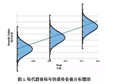 动物育种公司通常通过测量重要经济性状并利用该信息计算遗传指数来选择最优秀的动物,从而进行遗传改良。这些优秀的动物继而用来生产下一代,因此群体表现越来越好。此方法可以使每一代产生非常显著的遗传进展,有时能够达到遗传指数的一个标准差以上。而在同一代群体中,遗传指数的分布也存在显著的差异,因此选择群体中更加优秀的个体会带来额外的价值(如图1所示)。20世纪90年代以来广泛应用的人工授精技术,使得一头公猪可以影响更多的后代,因此遗传指数的差异越大,可造成的价值差异也更大。在中国的大部分育种公司一般按照固定的价格销售终端公猪而不考虑指数,因此,本文的主要目的是评估一个群体中指数差异带来的实际价值差异,并讨论此差异是否足以促使育种公司建立基于指数的终端公猪价格策略。