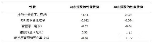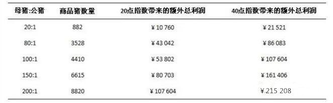 表2. 公猪指数提高20点和40点带来的额外总利润