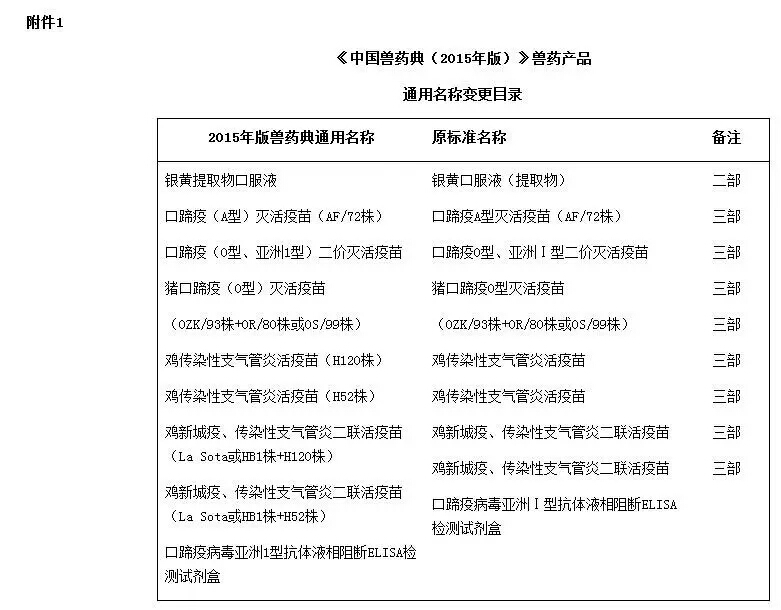 三、《中国兽药典(2015年版)》收载品种未收载的制剂规格(已废止的除外),质量标准按照《中国兽药典(2015年版)》收载品种相关要求执行,规格项按照原批准证明文件执行。
