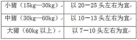 小型养殖场,每批适度规模为100-150头为好,一般不超过300头。坚持“留弱不留强”、“夜合昼不合”,即在转圈时转多不转少,留弱不留强,转大的,留小的,防止因转圈带来的应激,大欺小等,防止打架。要按来源、品种、体重大小合理分群合圈,合圈时安排在晚上,白天不合圈。每圈饲养10-30头。