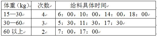 喂料次数:喂料次数,体重(kg)次数给料具体时间