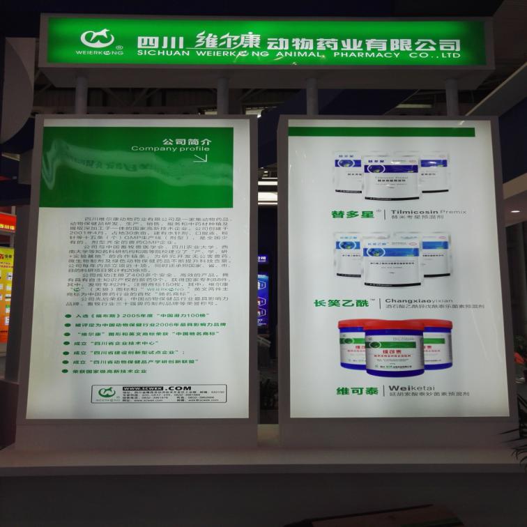 四川维尔康动物药业有限公司作为东道主企业,与我省其他兄弟企业组团参展,即体现四川的地域特色又充分融入生物科技,展示了四川省兽药行业的整体形象、特点及优势,展现了四川兽药科技与发展。