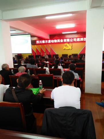 2016年9月20日,由片区经理邓仁全精心组织,应江油市宏状园兽药有限公司总经理赵红的邀请,迎着沥沥秋雨,四川维尔康技术巡讲团走进四川省江油市。此次会议由维尔康开发部经理黄声全主讲,参会养殖户80余人。
