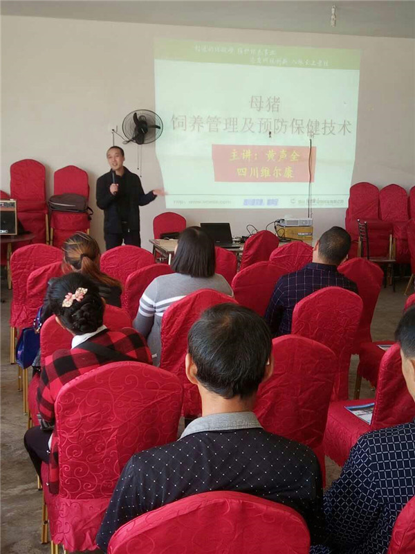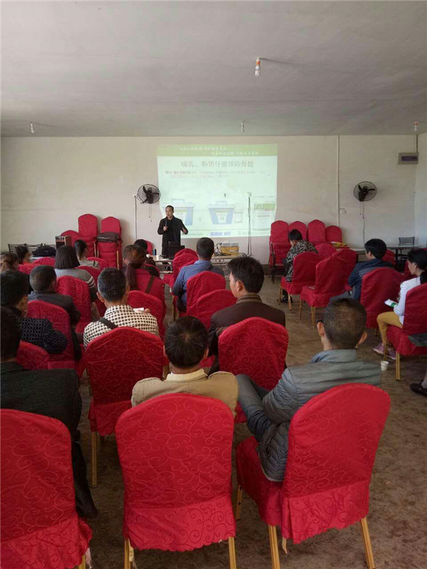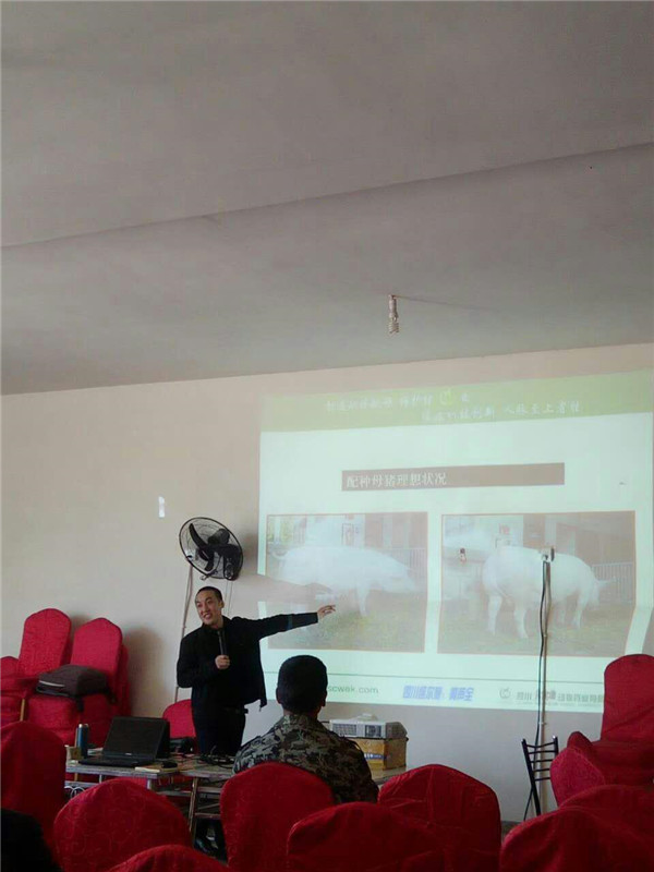 此次会议,黄经理根据当地养殖规模以中小猪场为主、养殖技术水平相对较低的现状,就《母猪饲养管理及保健技术》做了浅显易懂的讲解。随着养猪集约化程度的不断提高,母猪群在生产过程中遭受着环境、营养、疾病等各种因素的威胁。实施免疫预防与药物保健时,在技术实施上也存在程序不科学、不合理的问题,影响到猪只的健康,从而造成如流产、死胎、子宫内膜炎、乳房炎、应激、饲料霉菌污染、疫情等一系列的问题,严重影响了母猪的繁殖性能,给养猪生产造成不可挽回的经济损失。