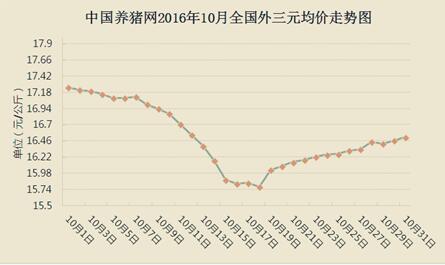 从六月开始的下行终于在十月结束了,在黄金周刚结束的时候,我们就曾预测过猪价将在十月触底反弹,猪价的回涨将提前到10月底或11月初。在10月18日猪价跌至今年最低点15.78元/公斤,随后便迎来了半个多月的上涨。