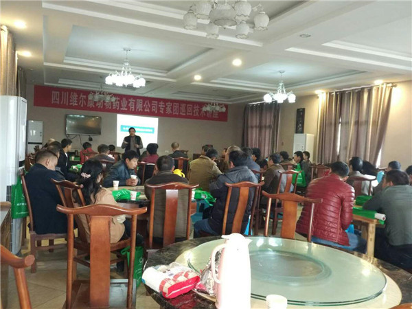 2016年11月20日,在岳池为民兽药肖总的热情邀请,片区经理邓仁全精心组织下,维尔康技术巡讲团走进四川省岳池县,在南泥湾休闲山庄召开了一场技术会议。会议由维尔康专家团四川农业大学博导李英伦教授主讲,参会养殖户60余人。