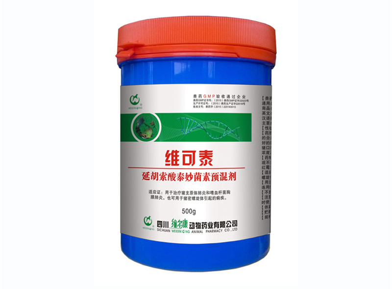 2、维可泰125g+维尔康强力舒1000g+维尔康费严宁1000g。拌料1000kg饲喂,连用5-7天。