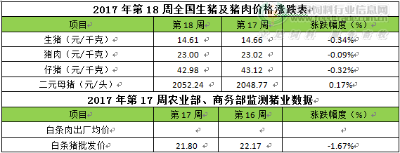 仔猪价格:据农业部监测数据显示,上周仔猪价格环比下跌1.7%,较去年同期下跌13.7%,全国500个农村集贸市场仔猪均价持平于42.22元/千克,三元仔猪价格下跌至42.98元/千克。生猪价格持续下跌,拖累仔猪价格,仔猪价格小幅下跌态势持续。
