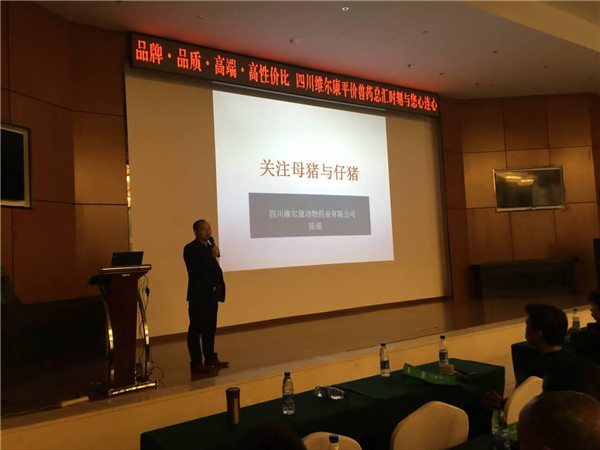 公司陈强副总经理就公司与四川农业大学联合开发的母猪专用保健产品"强生肽",以及公司母猪系列保健产品作了专业的介绍。强生肽以益生菌、高端维生素、各种中药处方而成,实现"清、补、调"的作用机理,强力提升母猪繁殖性能,解除母猪生产繁殖疲劳综合症。解决母猪便秘、泪斑、受孕率低、产程过长、初生仔猪整齐度,母猪使用年限短等一直困扰养殖生产中的问题。受到参会朋友的热情关注!会议还特意安排现场向邓教授提问,大家争先恐后,积极提问,邓教授一一进行了解答。会议在大家意犹未尽的气氛中落下帷幕。