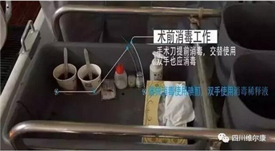 手术前对手术器具以及术者手臂使用消毒稀释液进行消毒处理。