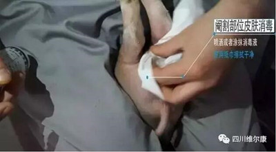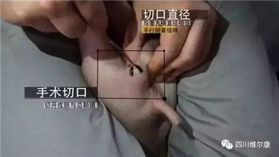 3、消毒后在靠近阴囊底部后三分之一处,平行阴囊缝隙1CM左右划开皮肤与总鞘膜,切口直径要与睾丸横径相当。
