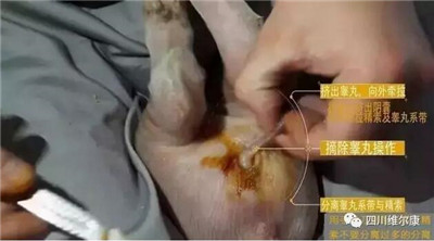 4、挤出睾丸。