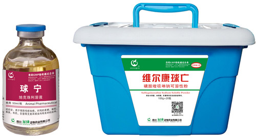 药物保健防球虫:防治球虫病的药物较多,但不能长期单独使用一种药物,应经常更换或1~2种药交替使用,另外药物剂量要足,搅拌要均匀,要按规定疗程进行,疗程不足会影响治疗效果,还易发生耐药性。预防可用“球宁”50ml兑水250kg或“维尔康球亡”100g兑水30kg,自由饮用,定期轮换使用,一般预防类药物一种连续使用不得超过2个月;治疗则可用“维尔康球亡”100g兑水20kg,自由饮用,连用1周。