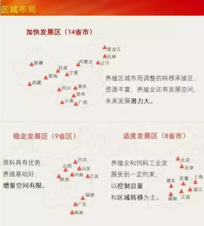 北京、天津、上海等大城市和江苏、浙江、福建、安徽、江西、湖北、湖南、广东等南方水网地区,该区域受资源环境条件限制,生猪生产发展空间受限,未来区域养殖总量将保持稳定。国家将严格限制。