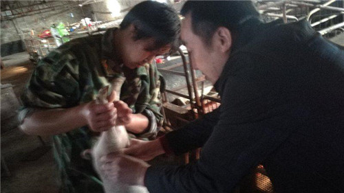 黄经理进入猪场,为病猪诊断