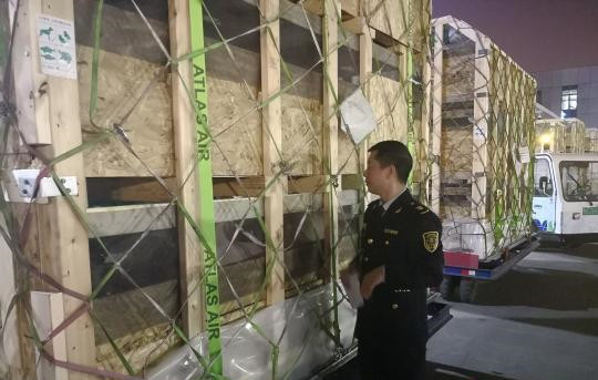 990头种猪从美国芝加哥乘包机经30余小时飞行后,顺利抵达成都双流国际机场。