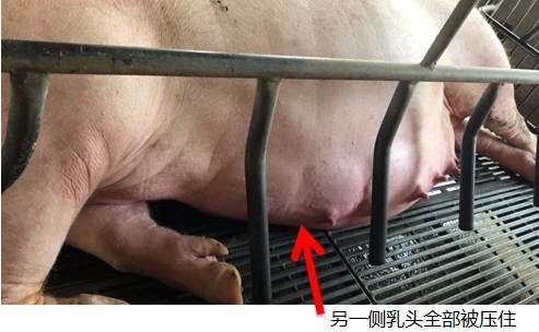 小猪吃奶困难,母猪躺下的时候,上面的奶头好多小猪抢着吃奶,但是下面的乳头小猪很难去吃到奶,因为被压着,且母猪乳房越宽的,压着就越严重,造成了上面的乳头强壮的小猪占领,很弱小的仔猪,抢不到奶喝,越来越瘦成为僵猪。