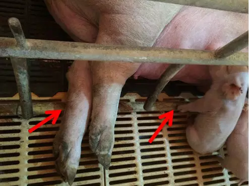母猪产后体质虚弱,母猪站起来吃料的时候,会向两边侧滑,潮湿的环境特别滑,母猪的肢蹄病就会增多,往往这些母猪,不愿意站起来,也害怕站起来,每次喂料都站起来一下喝点水就累了,站不稳,没有支撑点,没有什么欲望去吃料了,这样的母猪体内代谢不正常,恢复的慢,奶水质量差,小猪不长、拉稀等问题接踵而至。