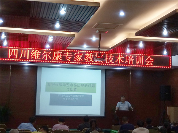 2018年5月5日,受峨眉山市建国兽药有限公司邀请,四川维尔康动物药业有限公司专家团成员四川农业大学博士生导师李英伦教授抵达峨眉山市,为当地养殖户90余人带去《夏季母猪养殖容易出现的问题与处置》。