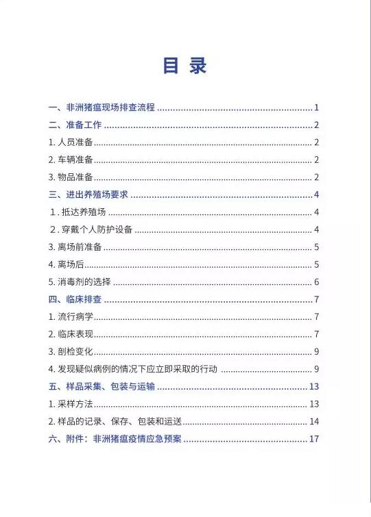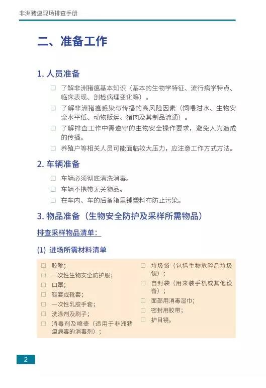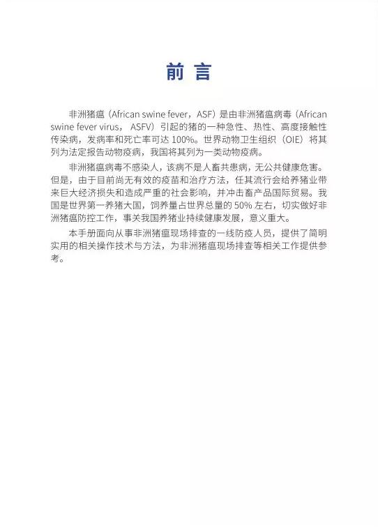 > 非洲猪瘟现场排查手册(中国动物疫病预防控制中心)