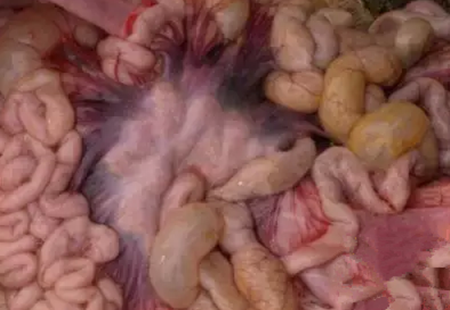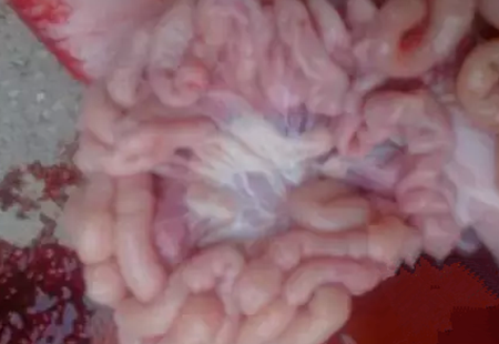 二是检查肠的浆膜面是否变红(梭菌感染)或透明(传染性胃肠炎)。