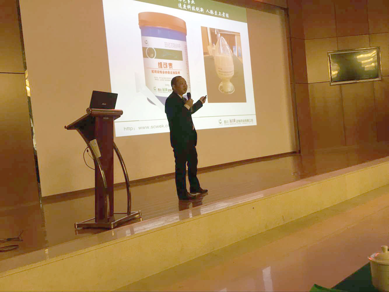 何教授就"母猪饲养管理与疾病防控"课题作精彩讲解,课件图文并茂,生动形象,并就当前养殖生产过程中一些错误观念与习惯,进行分析总结,为养殖指明了方向,给养殖场老板指出了很多值得思考的问题。公司副总经理陈强先生,亲自到场指导工作,并现场作公司介绍,还就公司核心产品的剂型,含量,用法用量和先进的制剂工艺作详实的介绍。面对如何选择不同剂型,如何搭配,如何鉴别真假等实际问题,进行了——讲解。让养殖朋友更深刻的认识四川维尔康一一满载中国驰名商标、国家高新技术企业、巜福布斯》中国最具潜力100榜,中国兽药制剂30强等等殊荣。优质的服务,高性价比的产品,四川维尔康始终坚持"打造动保航、维护绿色事业,速度科技创新、人脉至上者胜"的经营理念,誓为养殖朋友保驾护航!