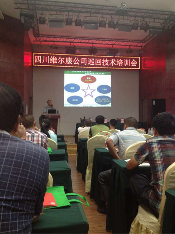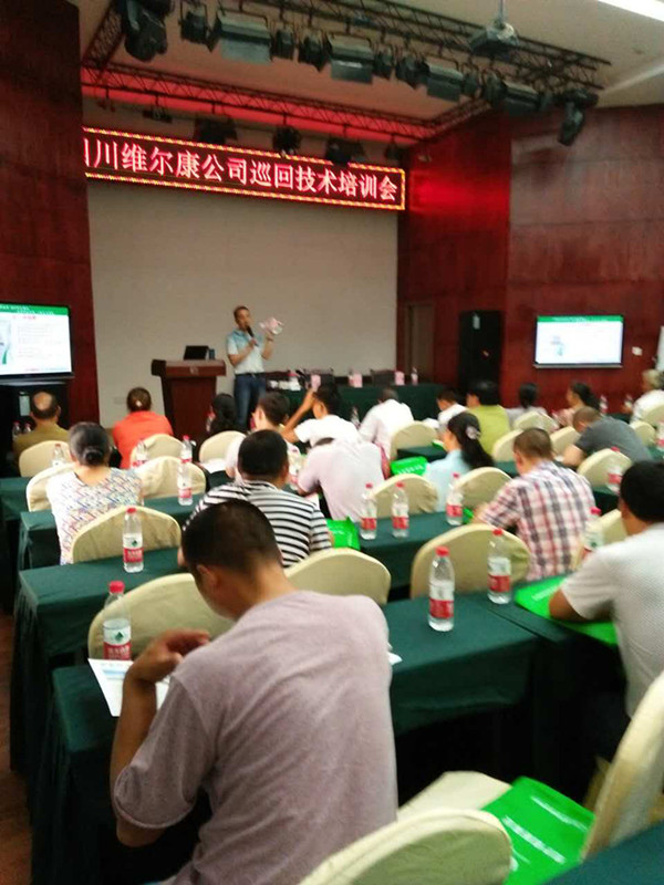 会议首先由盐亭县华奥饲料兽药总经理彭强致辞,彭总对维尔康公司的产品给予了极高的评价,感谢公司给养殖户带来先进的技术和优质的产品。彭总的致辞拉开了这次巡回技术培训会的序幕。